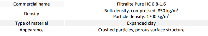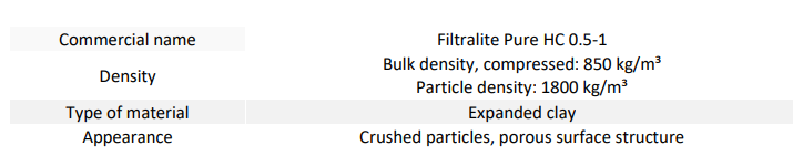 Filtralite® Pure HC 0,8-1,6 is high quality filter media, manufactured from expanded clay material, used for filtration in drinking water treatment and in swimming pool filters. The porous, sharp-edged grains have strong resistance against mechanical abrasion and low acid solubility. Filtralite® Pure HC 0.8-1.6 is an inert, ceramic material.