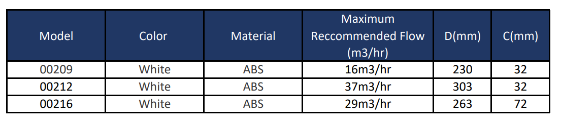 Drain grilles for use in residential and commercial swimming pool applications. Available in plastic or stainless steel. Frames made in plastic. Grilles designed according to standard EN-13451-1:200. Excellent finish.