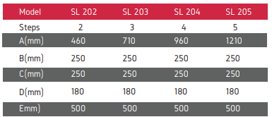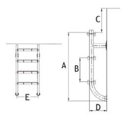 Handrails in polished stainless steel 316(Ø42mm) tube. The thickness of the tube is 0.9mm for A and 1.1mm for B. Each ladder design is available in two different styles of treads; Standard stainless steel tread and antislip plastic tread. Each ladder step can be supplied with 2,3,4 or 5 steps