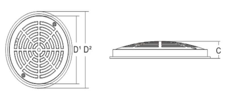 Support ring and grille in S.S. AISI-316. Complete with grille fixing screws. Recommended max. flow: 13 m3/h.