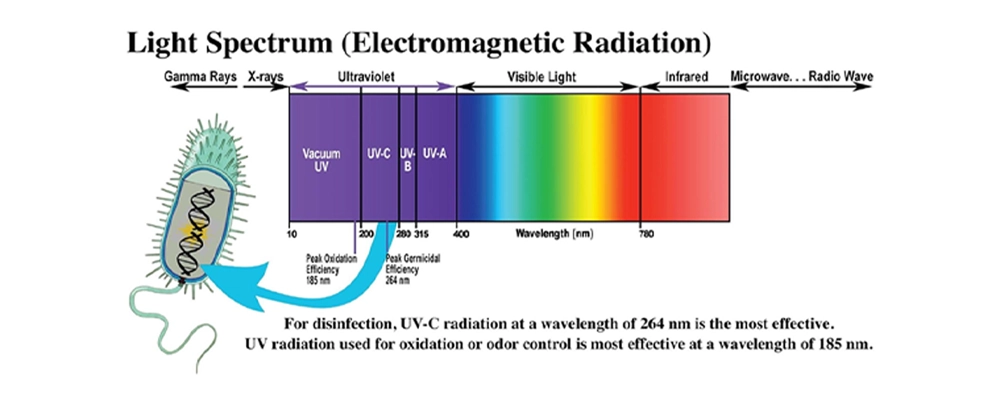 It usually takes a few seconds to complete. While causing damage to the DNA structure of microorganisms, they are also broken into small fragments. Medium pressure ultraviolet sterilization penetrates the cell walls of the microorganisms and damages their DNA or RNA disrupting their ability to reproduce. Therefore, it can have a permanent inactivation effect on microorganisms any resurrection reaction or bacterial rebound phenomenon. - The broad-spectrum sterilization is high. It can efficiently kill all bacteria and viruses and can permanently inactivate them. It is particularly effective in the destruction of Legionella pneumophila, Escherichia coli, Pseudomonas, Cryptosporidium, Amoeba, and bacteria, etc., which are known to be resistant to commonly used sanitizing agents.
