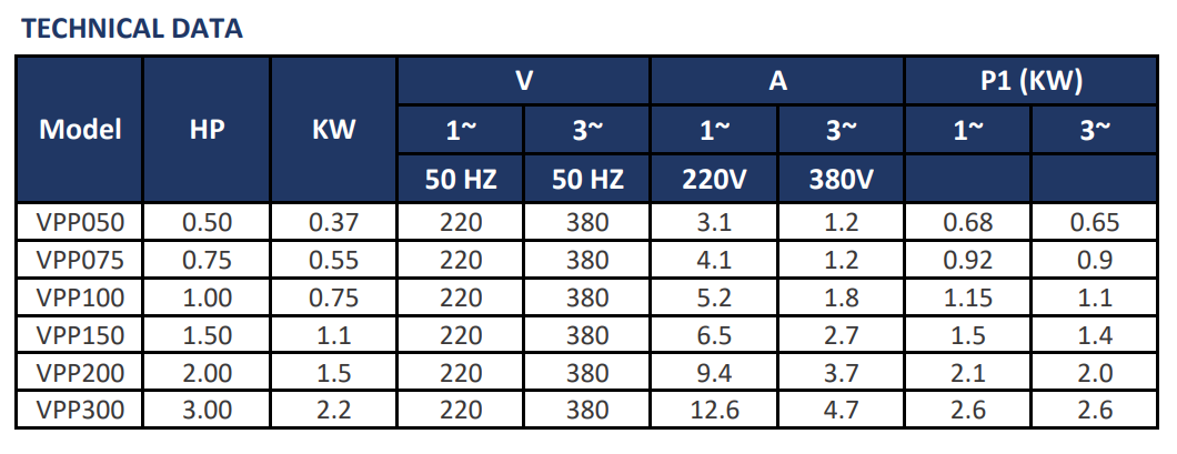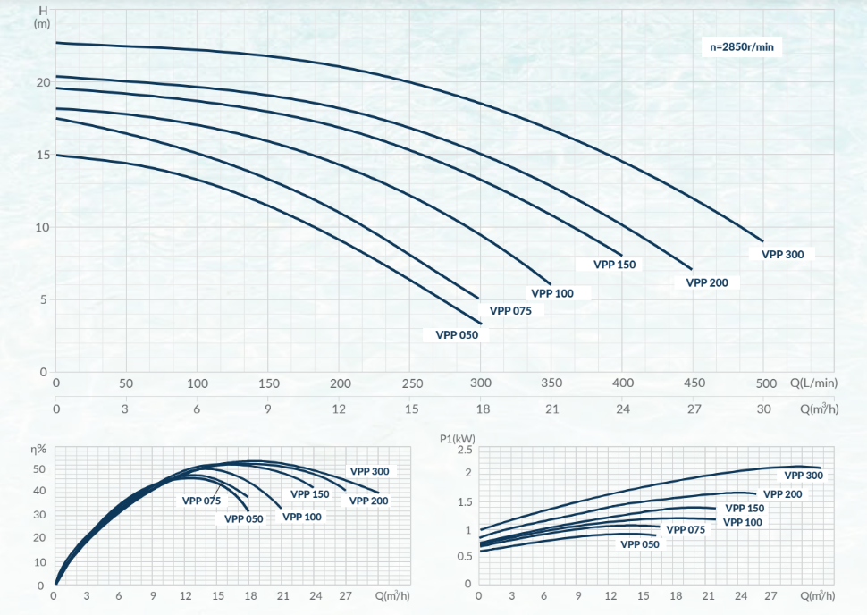 Pump body, pump foot and diffuser in glass loaded polypropylene.